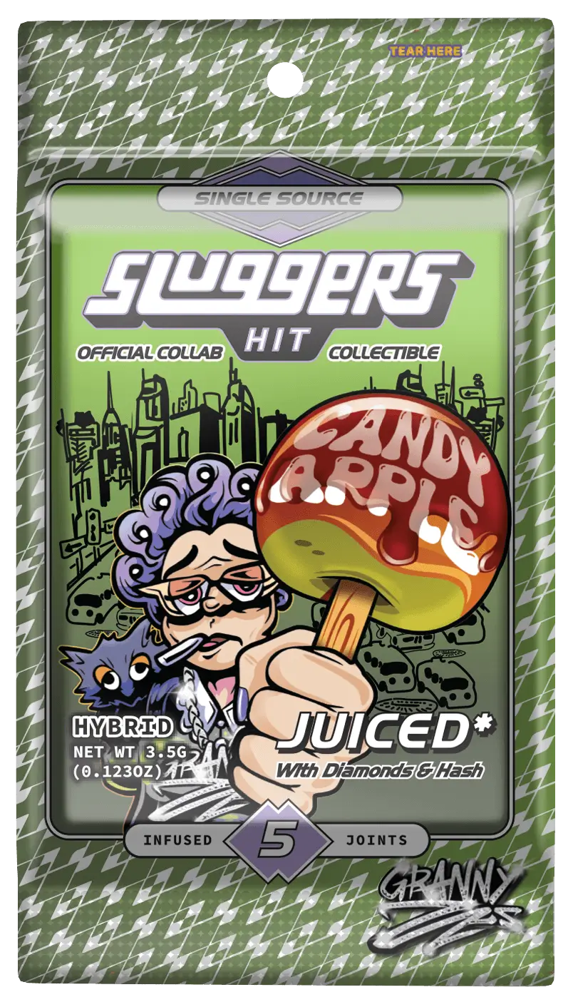 Elevate your cannabis journey with Sluggers Hit Candy Apple Pre Rolls and indulge in the sweet,